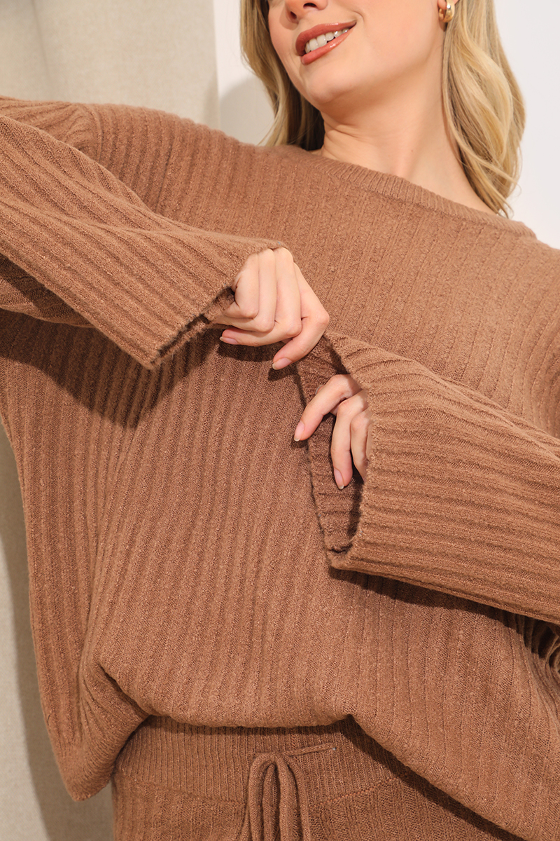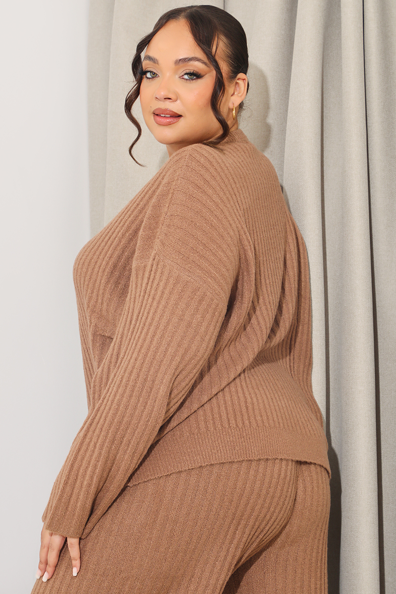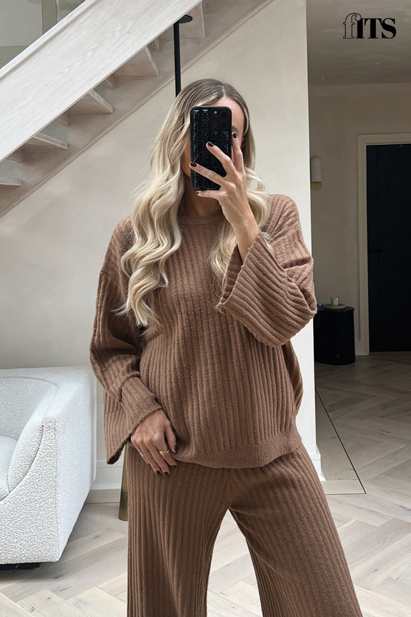 Get the perfect off duty look with this mocha slouch cardigan, pair with the matching knitted trousers for a stylish look we love.